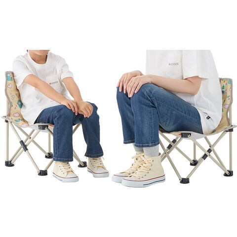 特徴:大人も座れる耐荷重約100kgのミニチェア、LOGOSオリジナル[ロゴスのえほん]デザイン、スリム収納、小物ポケット付き、背面パッド入り