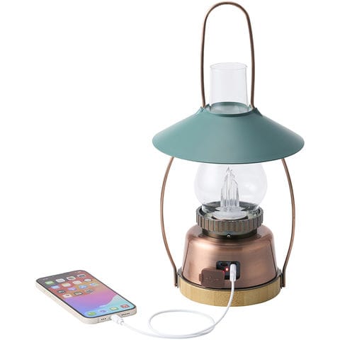 自宅のインテリアとしても活躍する、竹が香るガス灯風のクラシカルな LED ランタン.ボディの一部には竹集成材、ホヤにはガラスを使用し風合いを楽しむことができます.炎のゆらめきをイメージした[ゆらめきモード]を搭載.乾電池不要の蓄電式で、スマートフォンを充電できるのもポイントです.