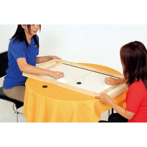 コンパクトな大きさなのでテーブルの上でも楽しめるエアーホッケーコンパクト版.屋内、屋外を問わず楽しめます.