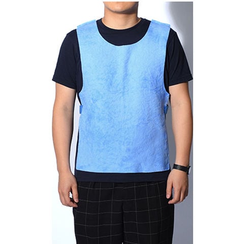 電気などは使用せず、水の蒸発冷却技術を応用し気化熱効果でひんやりしたクール感を実感できます.乾燥状態のベストを常温の水に入れ約5分浸します.十分な水分を吸収した後、ベストを水が落ちない程度まで絞ってから使用してください.サイドはマジックテープ式で調節、着脱簡単3WAY(直接着用、アウターとして重ね着、インナーとして).