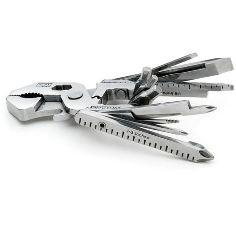 、ワイヤーストリッパー、ワイヤー曲げ、ドリス、爪ヤスリ、ボトルオープナー、インチ定規、インチ定規(延長)、ミリメートル定規、ミリメートル定規(延長)