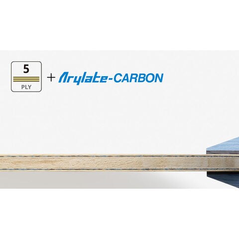 アウターファイバー仕様のラケットの中でも、弾みを抑えめに設計.球離れのよさと安定性が持ち味の、中級者向けのラケットです.アリレートカーボンが生み出すスピードと安定性の絶妙なバランスが特徴です.