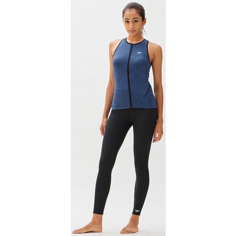 プールでのアクティビティをフレッシュに、より楽しくサポートするフィットネススイムウエアカテゴリー[Pool Athletics(プール・アスレティクス)].長時間のトレーニングを支える高い耐塩素性、4WAYストレッチ性に加え、透けにくい厚みと柔らかな風合いを実現した環境配慮型素材[ENDURANCE ECO(エンデュランス・エコ)]を使用したレディースボトムスです.露出を抑えた9分丈.UVカット機能付き.足首にSpeedoのロゴをプリントした、シンプルなデザインです.足さばきのよい3分丈のご用意もあります.