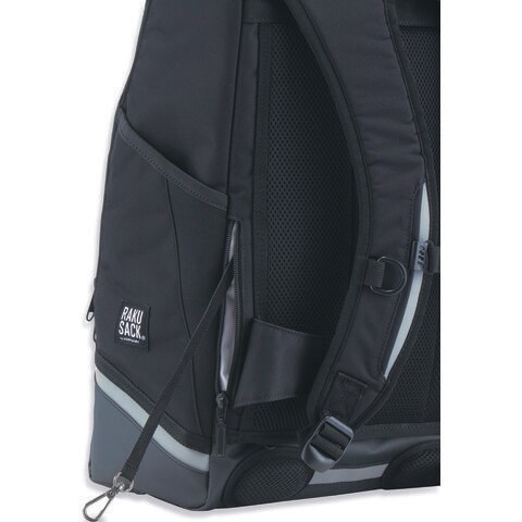 中学生や高校生が学校に持って行くカバンの重さは、実に10kg前後.持ち物が増えれば一つのカバンでは収まりきらない.だから作りました.RAKUSACKには全ての持ち物が収納できます.見た目も、機能も頼りになる[RAKUSACK(ラクサック)]です.ラクサック プレミアムには[スタンダード型]同様に、小物が収納しやすいポケットはそのままに、防水ファスナー付きのタブレット専用ポケットを装備し、内部のインナーポケットには折りたたみ傘が収納できます.また、突然の雨にも対応できるよう、レインカバーが底面に付属されています.