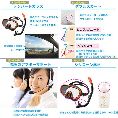 シュノーケルがスライドアダプターで使い心地抜群のセット.もちろんシリコーン素材で基本性能にも優れています.