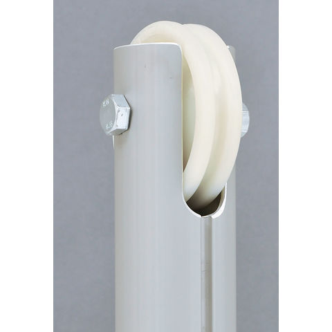 学校授業向けアルミバレーボール支柱.軽量なので、設置・収納時の取扱いが比較的容易に行えます.一方、たわみ量が大きいため、部活動や競技用途には向きません.