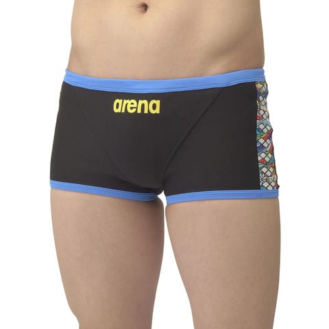 トレーニングカテゴリー[TOUGHSUITシリーズ].大会に向けて練習を重ねる頻度が高いスイマーにオススメの練習用水着.環境に配慮したリサイクルポリエステル素材[タフスキンT2E]を使用し塩素に強く長持ち.アリーナの象徴であるチームラインテープ(昇華)をサイドに配置したデザイン.前当て部分に黒の裏地付き.25FWシーズン新色でBK01が追加.シーズンテーマのWAVES柄のチームラインテープを配置した新色.ショートレッグタイプ.※こちらの商品は返品、交換はお受けしかねますのでご了承ください.