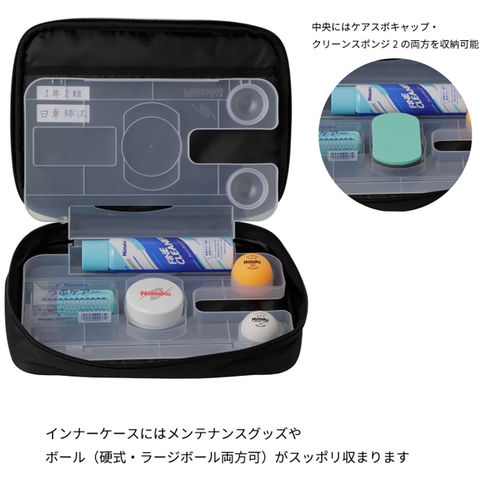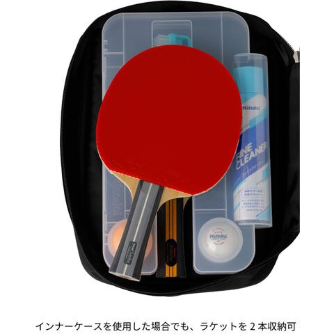メンテナンスグッズなどの内容物を落とす心配がなく、インナーケース使用時でもラケットを2本収納できます.
