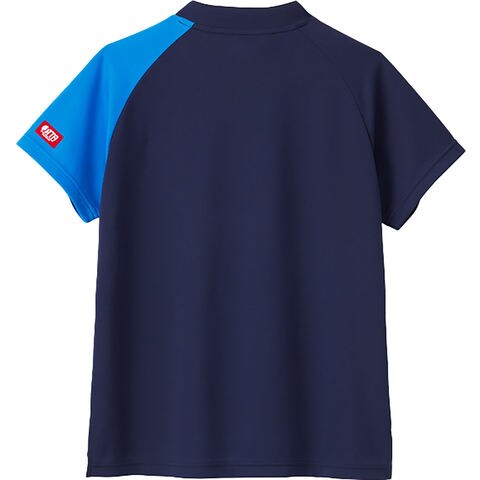 生地に直接染料を吹き付ける手法のインクジェットプリント.生地に再生ポリエステルを採用し、プリント工程でも”蒸気・ガス”などを低減する仕組みで SDG sを実現するレディスゲームシャツ.