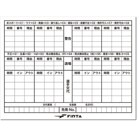 フィンタ FINTA レフェリー記録用紙 10 枚セット ( ハーフサイズ ) FT3516
