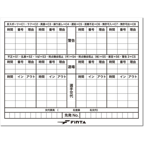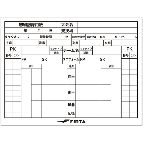 フィンタ FINTA レフェリー記録用紙 30 枚セット ( ハーフサイズ ) FT3517