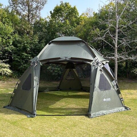 特徴:【大型メッシュ窓とベンチレーション】全方位に大型のメッシュ窓と、天頂部にベンチレーションが付いているため、風通しも抜群.空気が循環するので、寝袋や荷物が濡れて不快な思いをする結露を防ぎ、室内でも快適に過ごせます.【急な天候の変化にも安心の防水・撥・