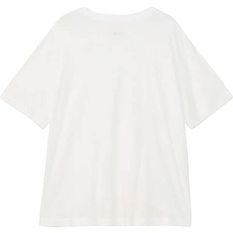 サステナブルを考慮した素材を採用した半袖Tシャツ.裾幅が広めのゆったりシルエット.