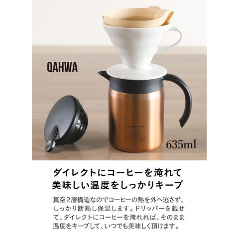 カフア QAHWA カフアコーヒー保温サーバー600 カッパー 635ml 珈琲専用 断熱 保温 キープ ボトル ワンタッチ 広口 テフロン加工 お手入れ簡単 ビジネス ランチ 867418