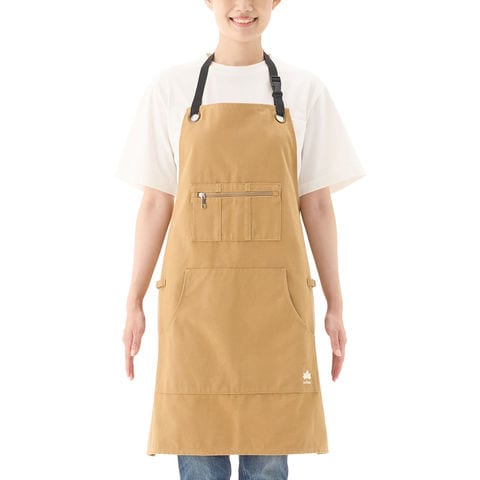 カンガルーポケットと使いやすい胸ポケット付きで収納力抜群のエプロン.たき火や BBQ などのアウトドアから、 DIY 、キッチン、ガーデニング作業など使うシーンを選びません.ファスナー付きポケットやタオルやカラビナなどをかけて使えるループ搭載など、機能面も充実しています.綿 100% の生地を採用し、多少の火の粉が飛んできても穴が開きにくく燃え広がりにくいため、たき火も楽しめます.ご家庭の洗濯機で洗えるのでお手入れも楽々.ワンタッチバックルで、腰紐を結ぶ必要がなく簡単に脱ぎ着ができます.キッズサイズ ( 別売 /NO.37060009) も展開し、親子でおそろいコーデが楽しめます.