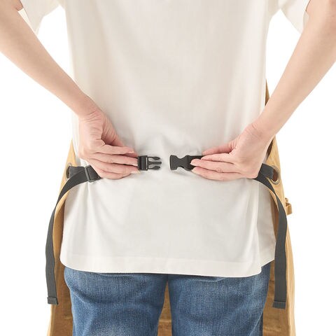 特徴:大型カンガルーポケットなど多機能.親子でお揃いができる!収納たくさんアウトドアエプロン!カンガルーポケット付きで大容量.使いやすい胸ポケット付き.ポケットにファスナーが付いているので貴重品入れにもなる.ワンタッチバックルで簡単に着用 ( 腰紐を、結ぶ