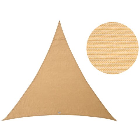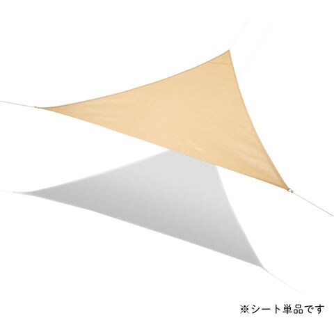 特徴:風通しの良い木かげメッシュタープ.耐光性に優れた 3D PE メッシュ.シート角には丈夫な金具付き.三角形.