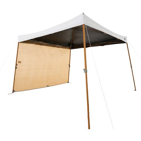 日差しをやわらげ風通しのよい木かげメッシュ生地のサイドウォール.シートは風通しのよさにこだわった木かげメッシュを採用し、日差しをやわらげながらも風通しがよく、まるで木かげにいるような快適さを実現. 8 ヶ所にグロメットを配置し、固定用ロープはコードロック付きで、取り付けや調節が簡単です.別売りの Q セットタープ 270 シリーズに対応.保管や持ち運びに便利な収納ケースも付属しています.