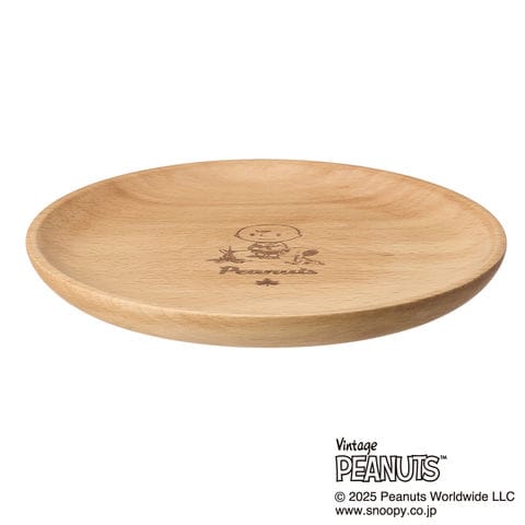 コミック[ PEANUTS ]の誕生 75 周年を記念したシリーズのやさしい温もりで食卓を彩る木製プレート.天然のブナ材を使ったプレートに、 1950 年代初頭のアートを使用したヴィンテージ感溢れるデザインを施しました.自然素材ならではの温かみと優しい丸みのあるフォルムが魅力です.直径約 20CM と扱いやすいサイズで、朝食のパンやサラダ、デザートまで幅広くお使いいただけます.ワンプレートにまとめると、料理をおしゃれに演出できます.落としても割れにくいのでお子様にも安心して使え、お家やキャンプで活躍します.