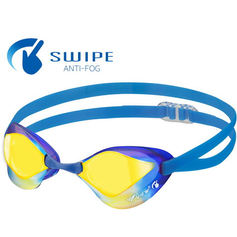 ビュー VIEW ブレードエフ スワイプ アンチフォグ BladeF SWIPE 競泳用 スイミングゴーグル レーシング くもり止め ミラータイプ UVカット 選べる鼻ベルト V122SAM Cブルー/オレンジ