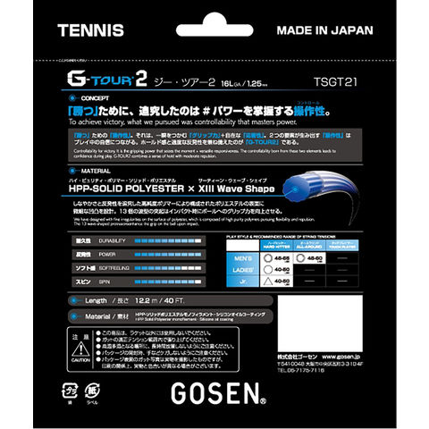 勝つために追及したのはパワーを掌握する操作性.ラケットの進化による[飛びすぎる]、[思った通りにコントロールできない]など現代のプレイヤーの悩みを解決するために、有り余るパワーを掌握し、ボールを[操作]する為、試行錯誤したどり着いたガット[ G-TOUR2 ].一瞬をつかむ[グリップ力]と自在な[応答性]により、パワーを掌握する[操作性]を生み出す.自分の思ったタイミングで狙った場所へボールをリリース.