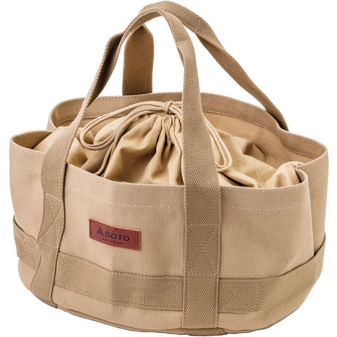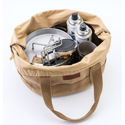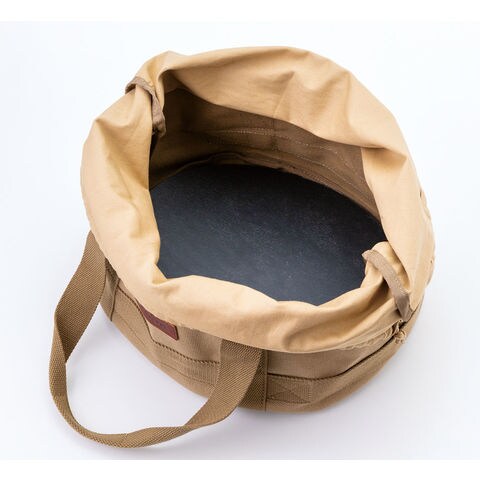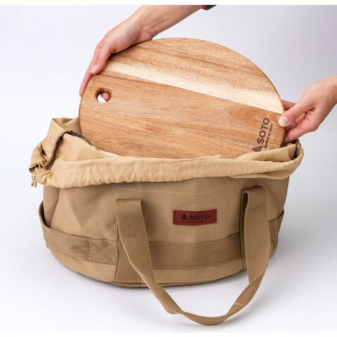 丈夫な帆布製トートバッグ.調理道具やガストーチなど、キャンプ用品をフリーに入れることができる.S・M・L の3サイズ.それぞれステンレスダッチオーブン 8、10、12インチにピッタリサイズです.木製フリーボード(別売)それぞれS・M・L の3サイズにピッタリ収納できます.ベルポーレンの底板付(3サイズとも)
