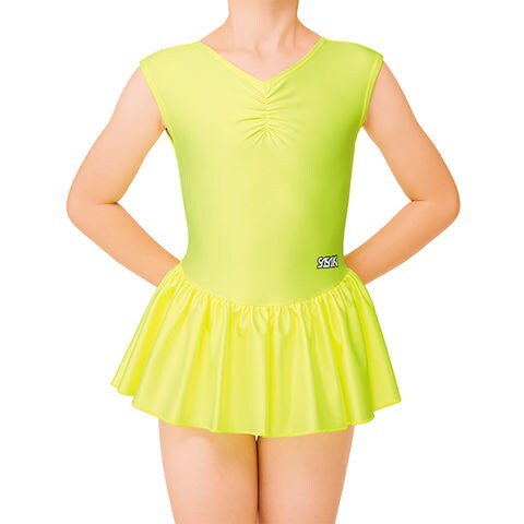 フレンチスリーブ+胸元のシャーリング+たっぷりギャザーのスカートが CUTEなジュニアレオタードです.※こちらの商品は返品、交換はお受けしかねますのでご了承ください.