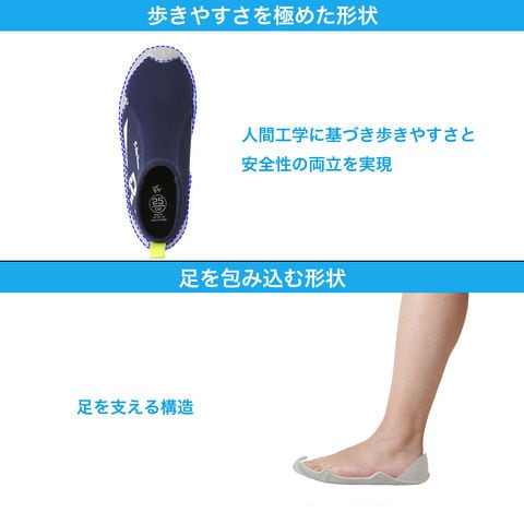 くるぶしまで保護できるミドルカットで足元のケガを防ぐマリンシューズ.日本人の足にフィットする幅広の靴底を採用し、履き心地も抜群.サイドに水抜け穴を設置することで通気性も確保しているので長時間使用しても快適な履き心地です.また、ヒールガードがあるのでシュノーケリングフィンも履きやすい仕様になっています!