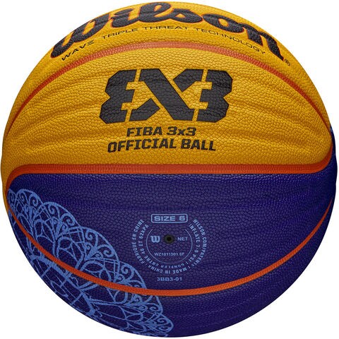 ウイルソン Wilson FIBA 3X3 ゲームボール PARIS RETAIL 2024 ブルー/イエロー 6号球球 国際 公式 大会 試合球 男女兼用 グリップ力 レザー 表面加工 1011502XB6