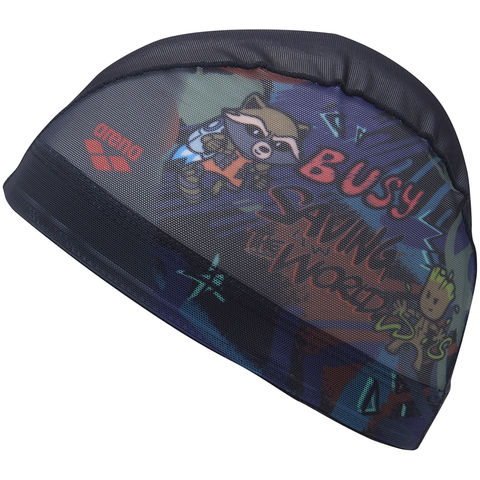 MARVEL( マーベル ) デザインのメッシュ素材のスイムキャップ.水抜けがよく、ハードなトレーニングでもムレ感がなく快適に泳ぐことが可能.大会に向けて練習を重ねる頻度が高いスイマーにも、ゆったり楽しくプールで泳ぎたいスイマーにもおすすめ. MARVEL( マーベル ) を代表する人気キャラクター ”アイアンマン” や ”キャプテン・アメリカ” に加え、映画『ガーディアンズ・オブ・ギャラクシー』に登場する ”グルート” と ”ロケット” が初登場 ! ペイントで落書きをしたようなタッチが特徴のデザイン.デザイン連動の水着 (AS5SWM50L / AS5SWM50G / AS5SWM51M / AS5SWM51B) やプルーフバッグ (AS5SBZ83U) とのコーディネートもおすすめ.