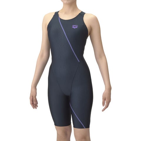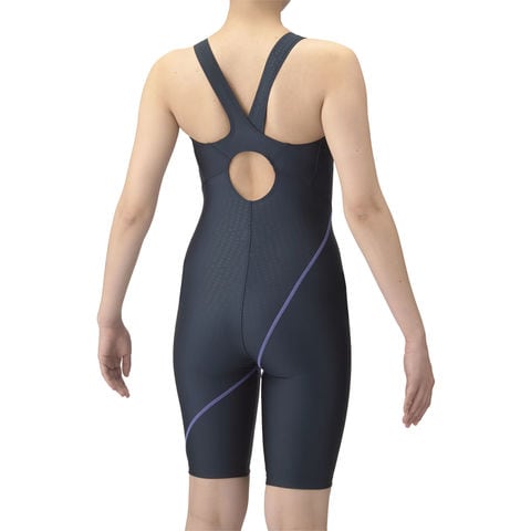 アリーナ arena フィットネスワンピーススパッツ ( オープンバック・ハーフレッグ・ぴったりパッド ) AS5SWF02L ネイビー/パープル