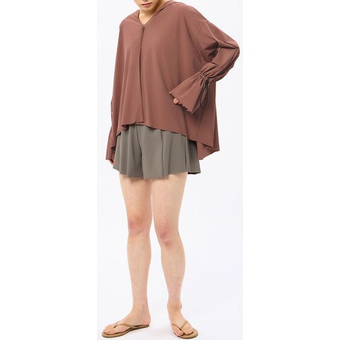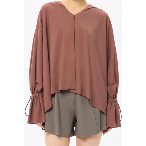 GRS認証のすてられるべき廃棄物を100使用したナイロン糸[RECONYLON(レコ・ナイロン)]を使用したリサイクル素材[SensitiveReco(センシティブ レコ)]採用のレディースフーディーです.前後で着丈の異なるトレンド感のあるシルエット.後ろ身はお尻下まですっぽり隠れる着丈で気になる部分をカバー.袖は、その日の天気(日差しの量)や気分で丈、デザインを調整できるドローコード付き.ラッシュガードとして水着の上に着用する他、アスレジャーやタウンなど日常のUVカットアイテムとしても重宝する一枚です.UVカット機能付き.※こちらの商品は返品、交換はお受けしかねますのでご了承ください.