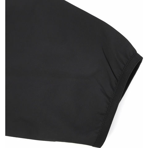 撥水性の高いウーブン素材を使用.首回りは伸縮性の高いリブ仕様で快適な着脱を実現.保温性と軽量性を加味した袖バインダー仕様.
