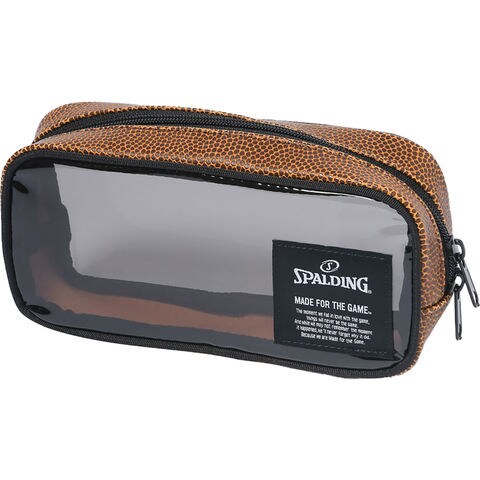 バスケットボール素材の合成皮革素材とクリア素材を切り替えたペンケース.