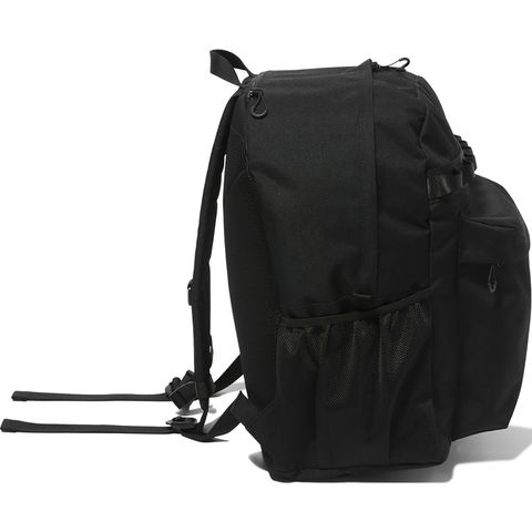 特徴:メインコンパートメントには 7 号球が収納可能な巾着袋を内蔵.仕切りのあるメッシュポケットを備えた大容量フロントポケット.カラビナ等を取り付けられるモールストラップ.小物が収納可能なファスナー付き吊りポケット.マイボトル等が入るメッシュポケット.