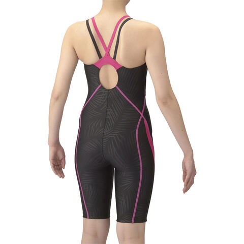 アリーナ arena フィットネスワンピーススパッツ ( オープンバック・ハーフレッグ・ぴったりパッド ) AS5SWF03L ブラック/ピンク