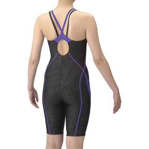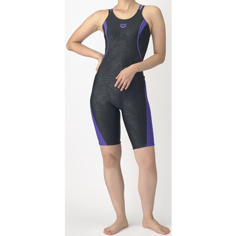 アリーナ arena フィットネスワンピーススパッツ ( オープンバック・ハーフレッグ・ぴったりパッド ) AS5SWF03L ブラック/パープル