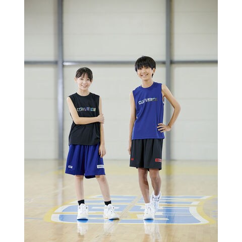 コンバース CONVERSE Jr.プリントノースリーブシャツ ボーイズ ガールズ バスケ ジュニア 練習用 ミニバス 小学生 初心者 部活 吸汗 速乾 キッズ スポーツウェア 運動着 CB451353 Cネイビー