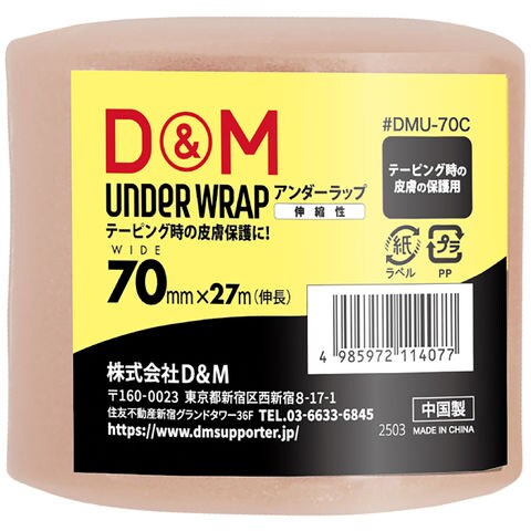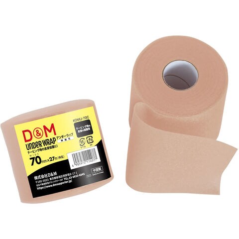 テーピングから皮膚を守る皮膚の保護用アンダーラップ.テーピングの回数の多い方、皮膚の弱い方に皮膚の保護としてオススメ!テーピングの前に巻くことで、皮膚とテープが直接触れ合うことを最小限に抑えます.皮膚の弱い方はもちろん、使用後にテーピングをはがしやすくなります.