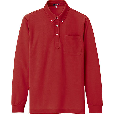 アイトス AITOZ 吸汗速乾 クールコンフォート 長袖ボタンダウンポロシャツ カラバリ豊富 消臭テープ付き 屋外 イベント ボランティア メンズ 男性用 レディース 女性用 大人用 105984L レッド