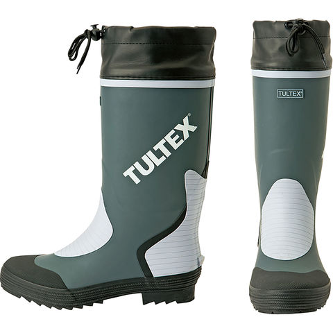 タルテックス TULTEX カラー長靴 フード付き 工事 現場 飲食店 工場 水産 食品 厨房 農作業 作業靴 PVC 糸入り 滑りにくい メンズ 男性用 レディース 女性用 大人用 47073L グレー/ライトグレー