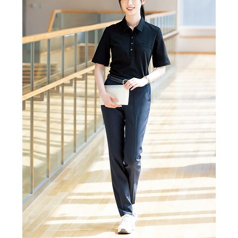 アイトス AITOZ レディース半袖ポロシャツ トップス 吸汗速乾 ストレッチ ECO素材 抗菌防臭 UVカット 屋外 野外 イベント ボランティア フェス 女性用 大人用 500155L ブラック