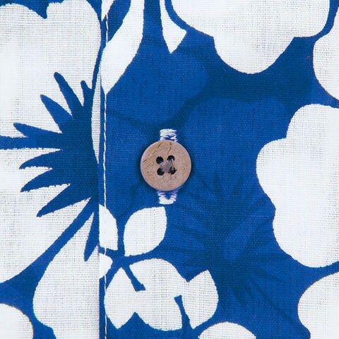 華やかでリゾート感のあるハイビスカス柄のアロハシャツ.