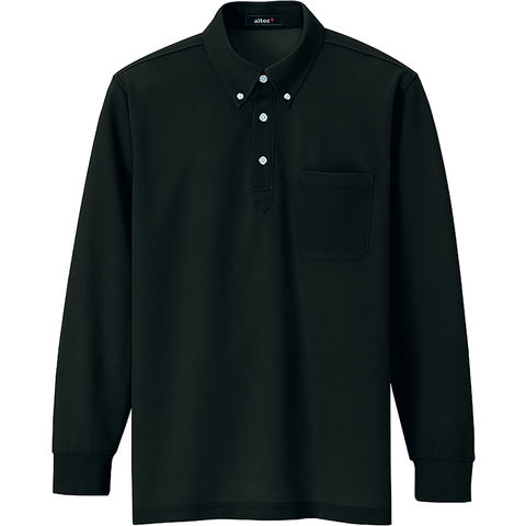 アイトス AITOZ 長袖ボタンダウンポロシャツ トップス ベーシック シンプル 鹿の子 カノコ 消臭テープ 普段使い 屋外 イベント メンズ 男性用 レディース 女性用 大人用 76163L ブラック