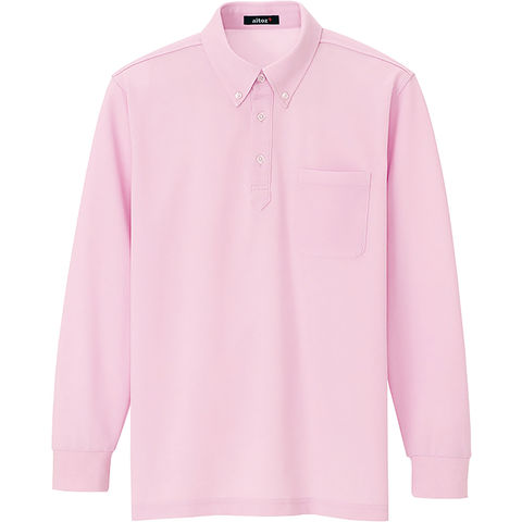 アイトス AITOZ 長袖ボタンダウンポロシャツ トップス ベーシック シンプル 鹿の子 カノコ 消臭テープ 普段使い 屋外 イベント メンズ 男性用 レディース 女性用 大人用 76163L ピンク
