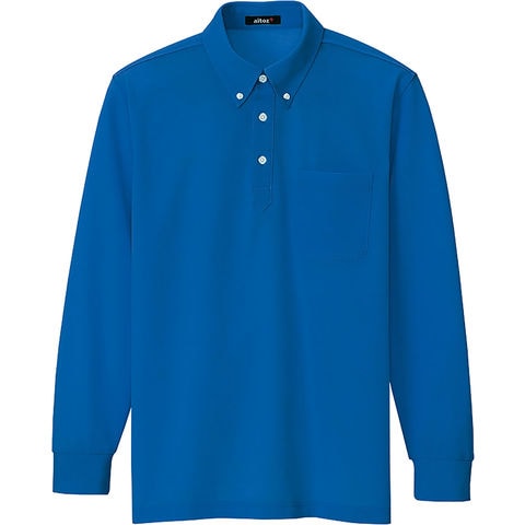 アイトス AITOZ 長袖ボタンダウンポロシャツ トップス ベーシック シンプル 鹿の子 カノコ 消臭テープ 普段使い 屋外 イベント メンズ 男性用 レディース 女性用 大人用 76166L ブルー