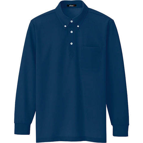 アイトス AITOZ 長袖ボタンダウンポロシャツ トップス ベーシック シンプル 鹿の子 カノコ 消臭テープ 普段使い 屋外 イベント メンズ 男性用 レディース 女性用 大人用 76166L ネイビー
