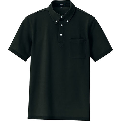 アイトス AITOZ 半袖ボタンダウンポロシャツ トップス ベーシック シンプル 鹿の子 カノコ 消臭テープ 普段使い 屋外 イベント メンズ 男性用 レディース 女性用 大人用 76174L ブラック