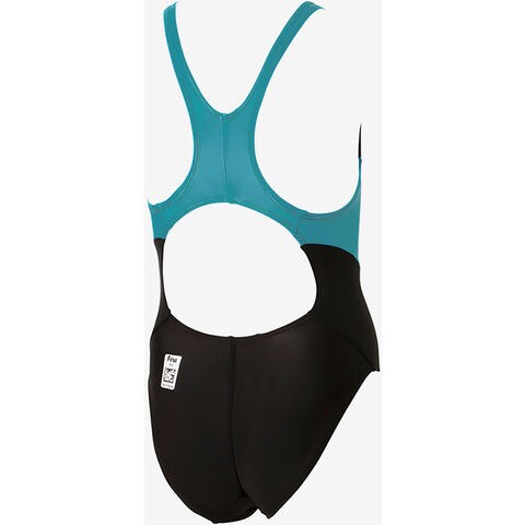 WORLD AQUATICS承認モデル.初めて公式大会に出るジュニアスイマーに向けて開発されたジュニアレーシング用スーツ水着です.厚手で安心感があり、はっ水性・伸縮性を伴った素材を採用.素材特有の柔らかな肌触りとフィット感で着心地が良いことに加え、生地表面にはっ水加工を施しているため、水中での軽量感が持続し、よりスムーズな泳ぎをサポートします.水抜けのよい大きな背穴と肩周りの動きを妨げにくいV字の肩ストラップです.両サイドのラインがシャープな印象.