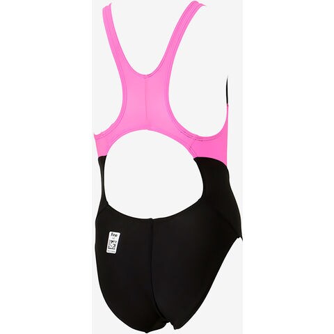 WORLD AQUATICS承認モデル.初めて公式大会に出るジュニアスイマーに向けて開発されたジュニアレーシング用スーツ水着です.厚手で安心感があり、はっ水性・伸縮性を伴った素材を採用.素材特有の柔らかな肌触りとフィット感で着心地が良いことに加え、生地表面にはっ水加工を施しているため、水中での軽量感が持続し、よりスムーズな泳ぎをサポートします.水抜けのよい大きな背穴と肩周りの動きを妨げにくいV字の肩ストラップです.両サイドのラインがシャープな印象.